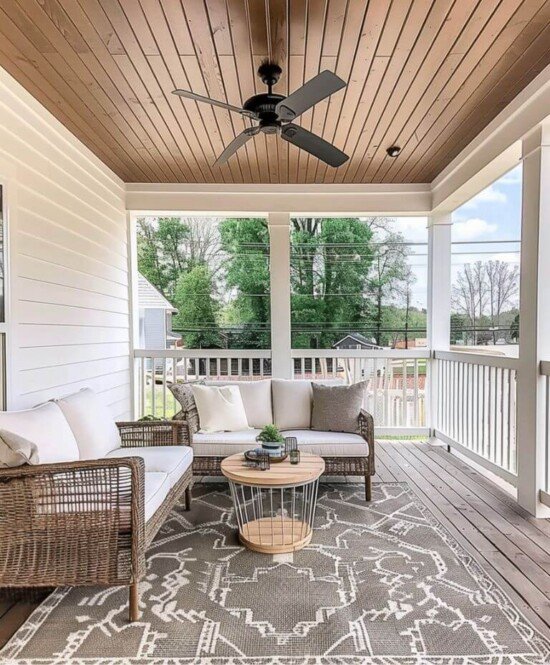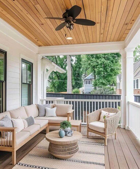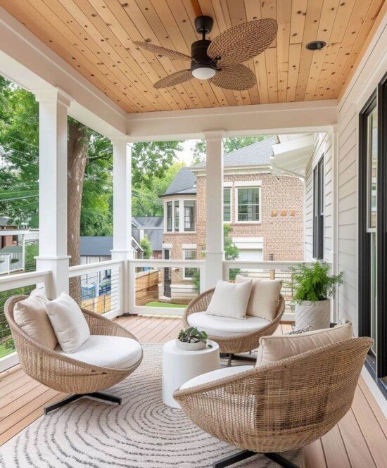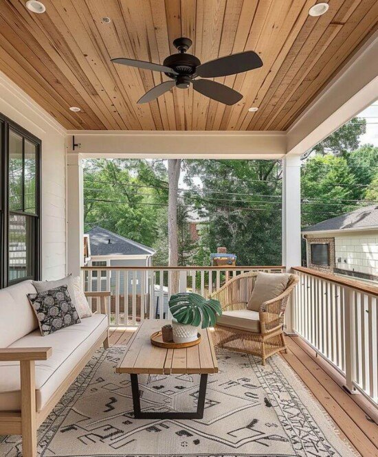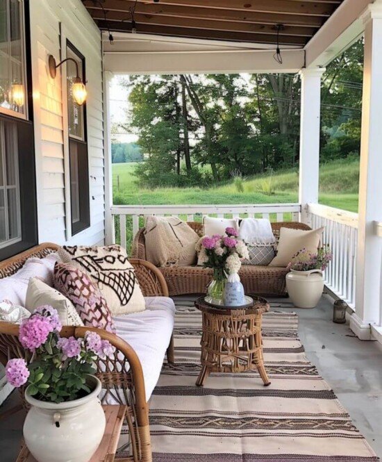Privacy is key in making your porch feel like a secluded retreat. Use tall plants or a vertical garden to create a natural screen that shields your space from neighbors. Not only does this enhance privacy, but it also brings a touch of nature and tranquility to your porch.